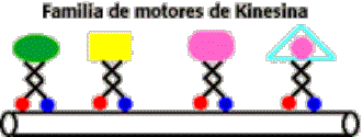 A la derecha hay un ejemplo de diferentes extremos ligantes encontrados en motores de la familia de las kinesinas
