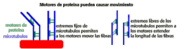Cuando se conecta a otros microtubulos, los motores de proteína pueden causar movimiento si los extremos están fijos o extender la longitud de los paquetes de fibras si los extremos están libres.